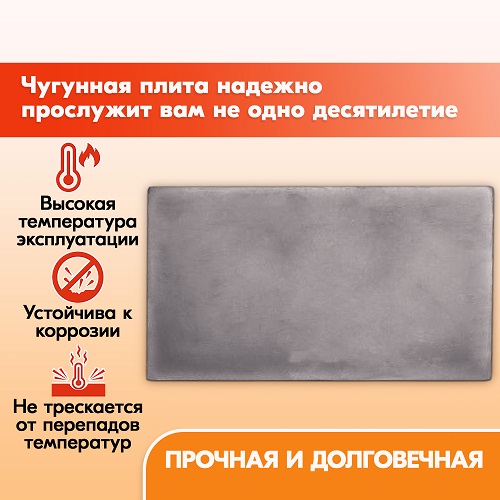За счет этого чугунная варочная панель для печи сохраняет свой первоначальный внешний вид на протяжении всего времени использования.